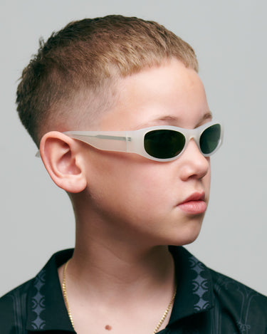 Alle vores briller produceres af BPA-frie og nikkelfrie materialer for at undgå allergi. Gust Junior er en smal 90’er inspireret solbrille med attitude.
