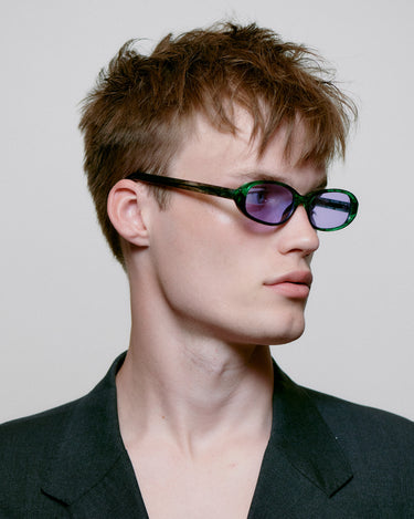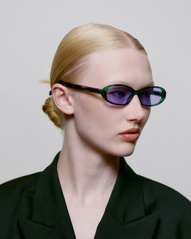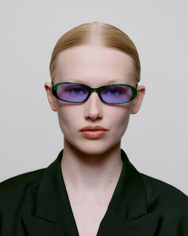 Macy er en super smal unisex model inspireret af 90'erne, designet med en let opadgående effekt, oval smalle linser og en blød afrundet ramme, der tilføjer en cool afslappet stemning.
