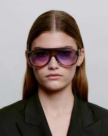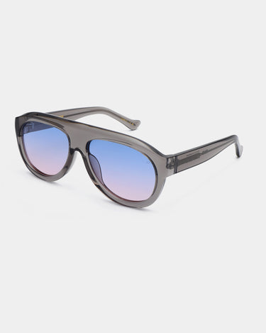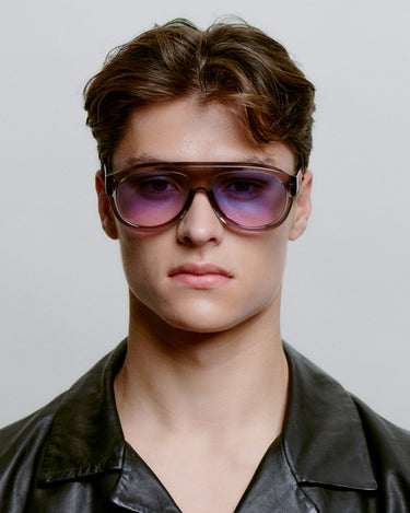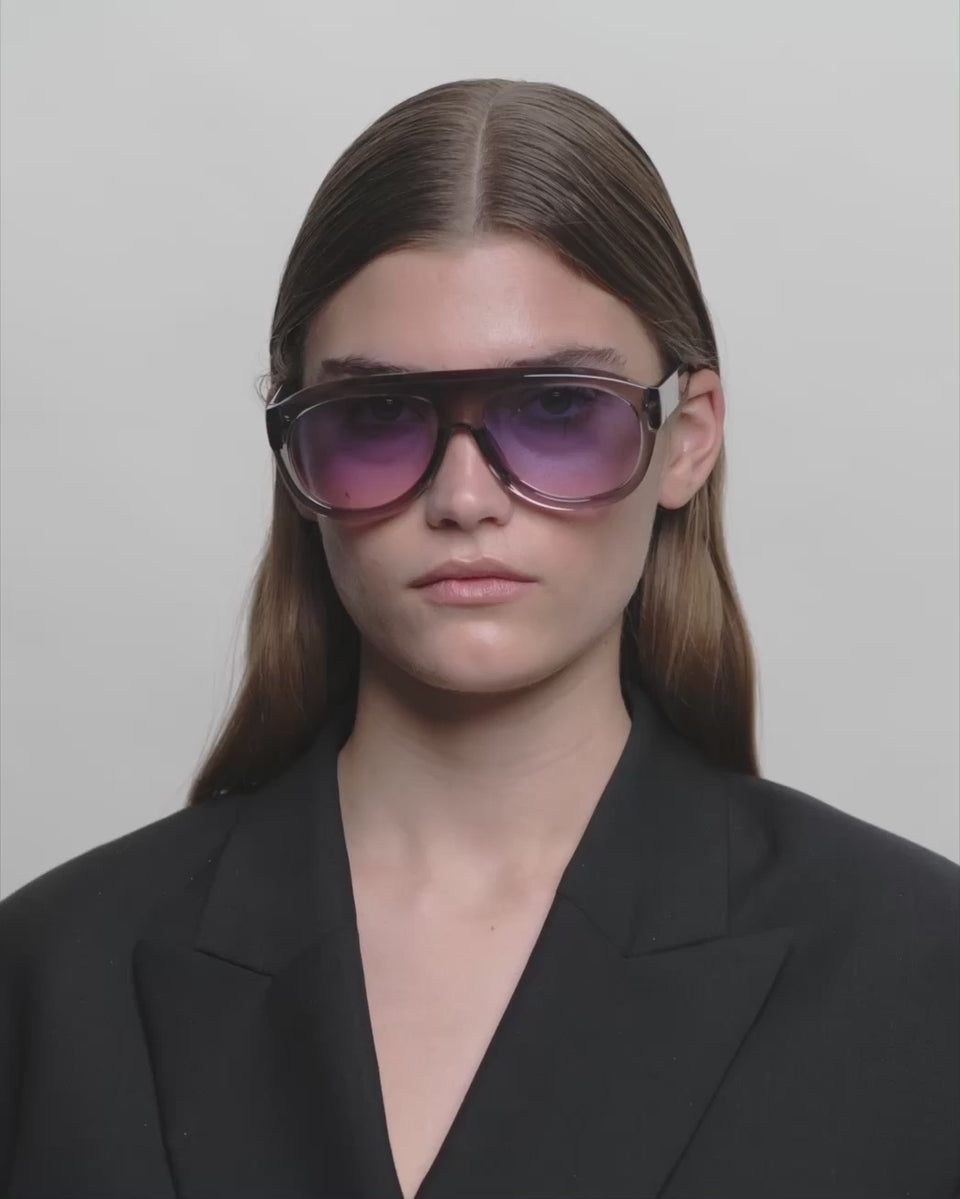 Rio - Grey Transparent er en nyfortolkning af aviator-stilen med en markant og skulpturel ramme. Den store silhuet og det dybe acetat giver et iøjnefaldende udtryk. Designet til solrige dage og selvsikker stil.