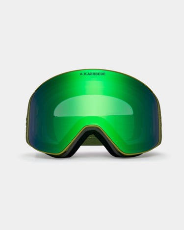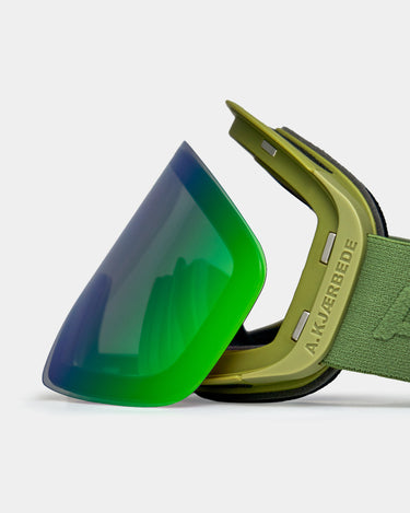 Enry - Speed Green er A.Kjærbedes ski- og snowboardbrille, skabt til dig der vil have et rent, minimalistisk look - men med funktioner, der leverer på pisten og off-piste. Her får du en skibrille, hvor udsyn, komfort og hurtig tilpasning er i centrum: anti-fog for klarhed, UV400 for beskyttelse og en REVO-belægning, der hjælper med at differentiere sne og is i skiftende forhold.