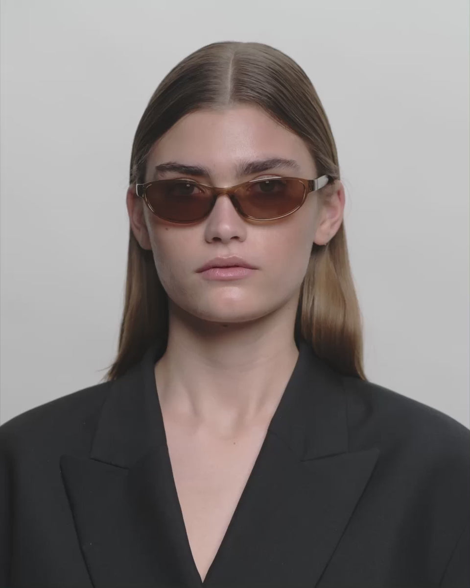 Alexa - Smoke Transparent er en smal cat-eye med et futuristisk og stramt udtryk. Den skarpe form og elegante linjer gør den til et stilbevidst statement. Ideel til at løfte hverdagens look med kant og karakter.