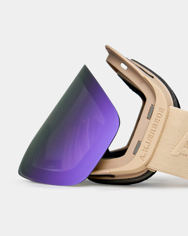 Enry - Gum Pink er A.Kjærbedes ski- og snowboardbrille, skabt til dig der vil have et rent, minimalistisk look - men med funktioner, der leverer på pisten og off-piste. Her får du en skibrille, hvor udsyn, komfort og hurtig tilpasning er i centrum: anti-fog for klarhed, UV400 for beskyttelse og en REVO-belægning, der hjælper med at differentiere sne og is i skiftende forhold.