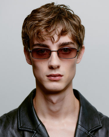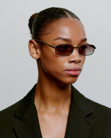 Noah - Silver Striped Horn har en sølv metal ramme med stribede stænger og brunlige linser.