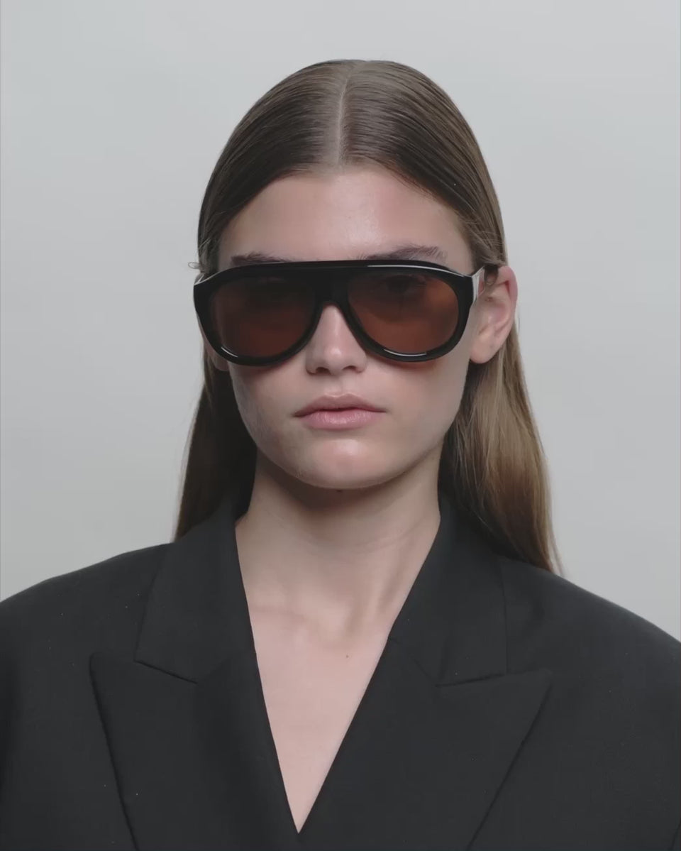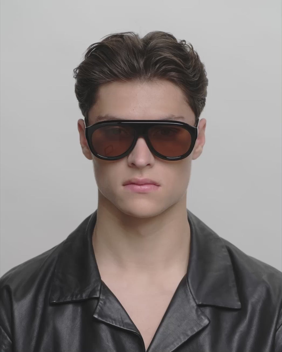 Rio - Black er en nyfortolkning af aviator-stilen med en markant og skulpturel ramme. Den store silhuet og det dybe acetat giver et iøjnefaldende udtryk. Designet til solrige dage og selvsikker stil.
